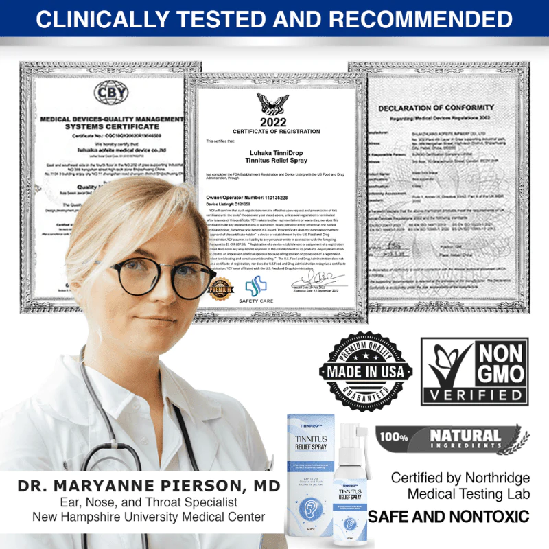 Dr. Maryanne Pierson, M.D., an otolaryngologist at New Hampshire University Medical Center in Massachusetts, and numerous other ENTs have regarded EarPure™️ Tinnitus Linderungsspray as a breakthrough solution for individuals whose tinnitus persists as a chronic hindrance. While some people may experience a reduction or relief of symptoms over time, others find that tinnitus continues to significantly impact their daily lives. EarPure™️  is considered a highly effective over-the-counter remedy, providing relief from tinnitus and its associated symptoms.