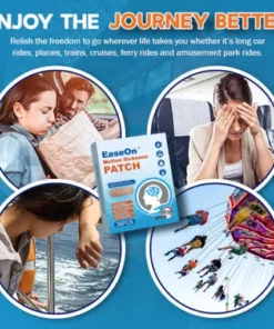 Experience a journey without the hassle of motion sickness, thanks to the cutting-edge EaseOn™ Motion Sickness Patch. Designed for travelers on the go, this innovative solution offers fast and effective relief from nausea, whether you’re cruising by car, boat, plane, or train. Bid farewell to the discomfort of motion sickness and say hello to hassle-free travel with EaseOn™. Your joyful adventures await!
