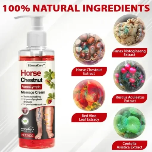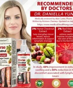 On August 13, 2024, Dr. Lily Moore, a renowned specialist at the American Institute of Vascular Health, reviewed EdemaCare™ Horse Chestnut VenoLymph Massage Cream, which contains 3% Horse Chestnut Extract to support lymphatic health by improving circulation and reducing fluid retention, resulting in a 50% reduction in swelling and discomfort.