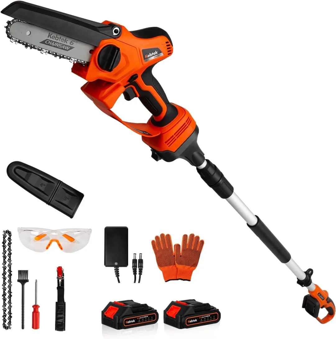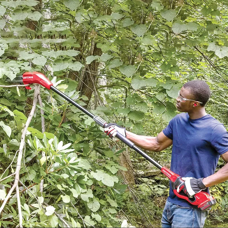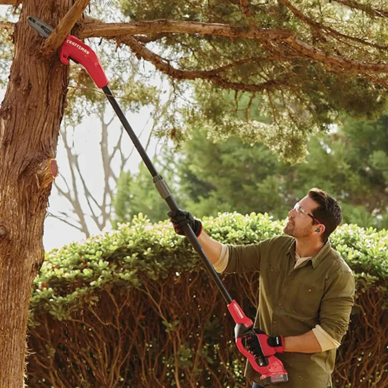 The pole saw features a telescopic pole that can be easily extended or retracted to reach different heights. It is equipped with a sharp saw blade on the end, allowing you to cut branches with precision and ease.