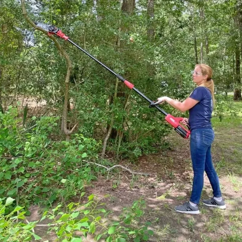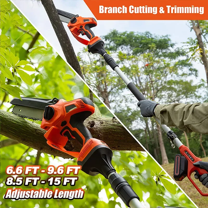 【Adjustable Extendable Pole】The length of the extendable pole can be adjusted from 201.2 cm to 292.6 cm or from 259.1 cm to 457.2 cm. When you need to prune very tall branches and don’t want to use a ladder for safety reasons, you will find this brushless pole saw very attractive. In pursuit of smart and efficient times, we hope this upgraded pole saw will bring you maximum convenience.