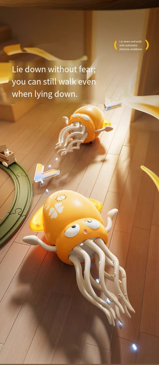 Equipped with advanced inductive obstacle avoidance sensors, the Electric Dancing Octopus smartly detects walls, furniture, and other obstacles. Thanks to its Auto-Avoid Technology, this robotic toy effortlessly pivots and dances around any space without interruption — guaranteeing continuous fun wherever you play.