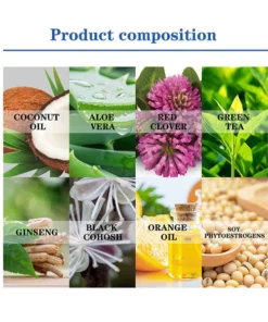 - Key Ingredients: Coconut Oil, Aloe Vera, Red Clover, Black Cohosh, Orange Oil, Ginseng, Green Tea, And Soy Phytoestrogens