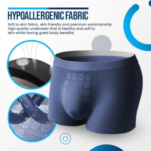 The Energy Field Therapy (Awoduph™) underwear have tourmaline material attached to the elastic fiber, creating heat sensations and promoting men’s health. The combination of tourmaline dots and magnets stimulates meridians, enhances blood circulation, and promotes cellular activation. This allows for magnetic energy field therapy benefits without any hassle.