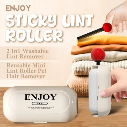 Enjoy Portable Reusable Sticky Roller – Lint, Hair, and Fuzz Remover