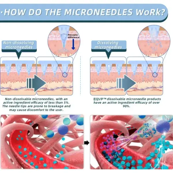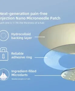Each needle is 0.27mm long, just 1/7th the thickness of a hair, and is made from dissolvable medication. These micro-needles are precision-engineered using cutting-edge manufacturing techniques to ensure a seamless, pain-free experience while effectively delivering the active ingredients directly into the skin.