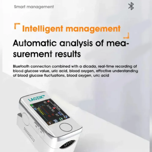 Completely painless—just place your index finger on the LAOZIK™ and, within 5-8 seconds, it will display your blood glucose levels, oxygen levels, and even your heart rate. Quick and easy!