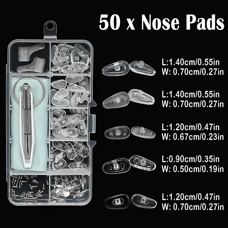 The nose pad of this glasses repair kit is made of 25 pairs(50 pieces) extra soft PVC, provides you comfort when you wearing glasses, reducing pain or discomfort. The common nose pads is suitable for any eyeglasses, you can assemble and remove it by yourself.