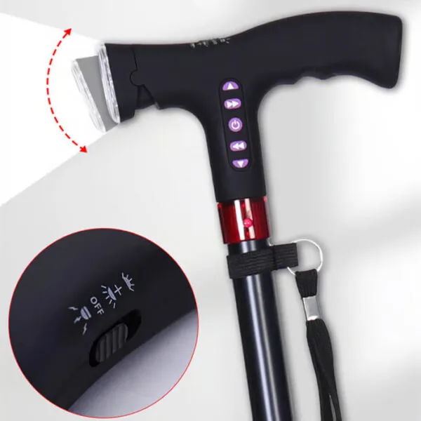 This walking cane features a built-in radio mode, which automatically searches for available radio stations. With a simple click, the elderly user can enjoy their favorite radio programs, news, or stories, without needing an internet connection. This entertainment feature adds a touch of joy and engagement to daily routines.