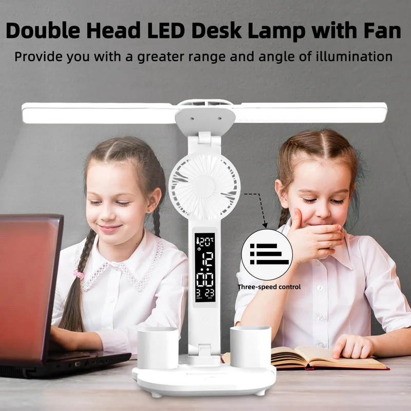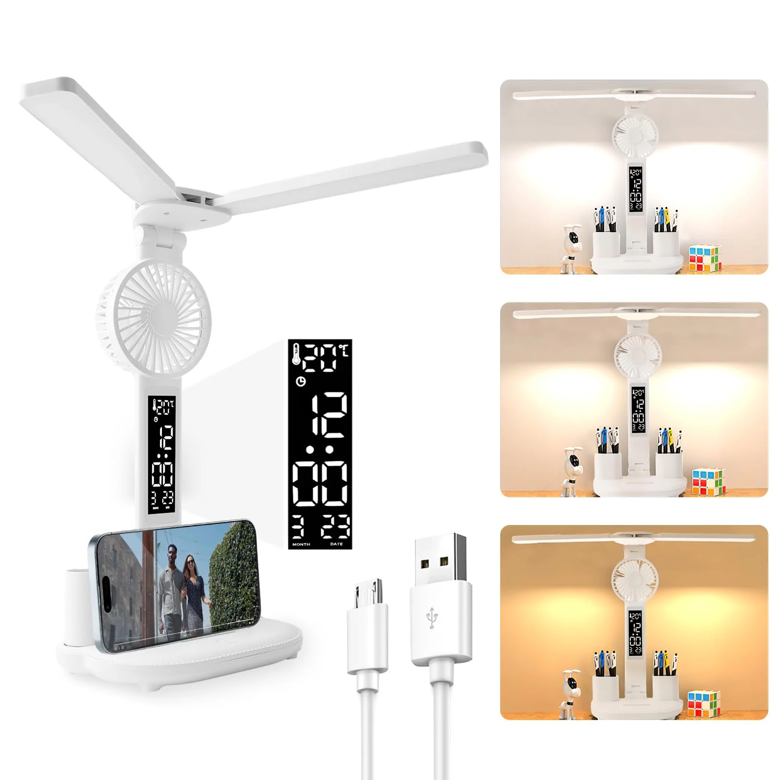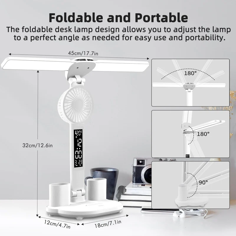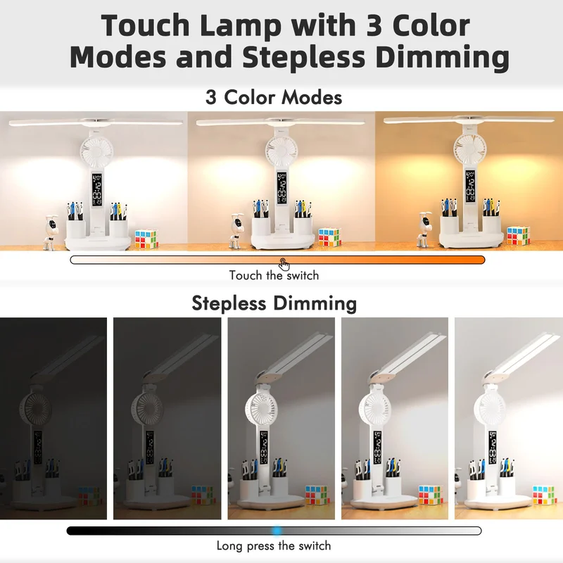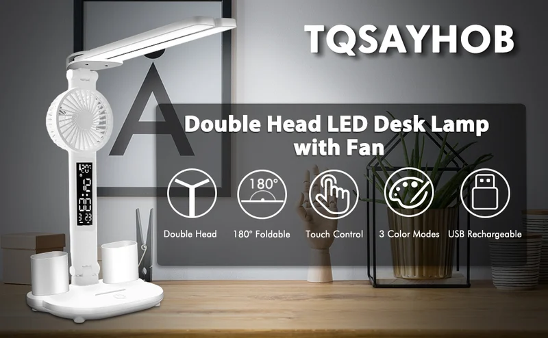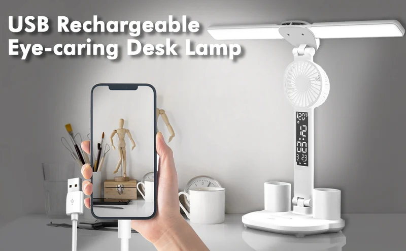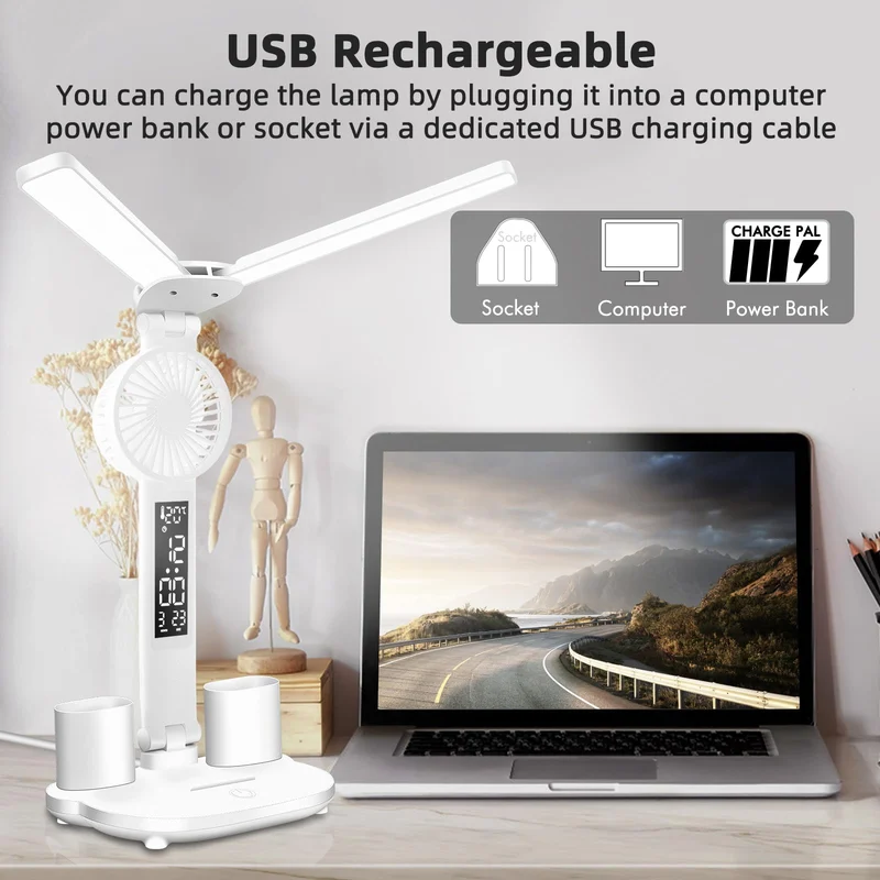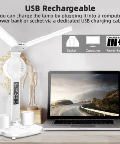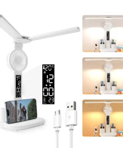• [USB Rechargeable & with fan] – The desk lamp is equipped with a 4000 mAh battery and a USB charging port. You can charge the lamp by plugging it into a computer, power bank or socket via a dedicated USB charging cable. In addition, the latest fan is also equipped with 3-level fan size adjustment, which has more complete functions.