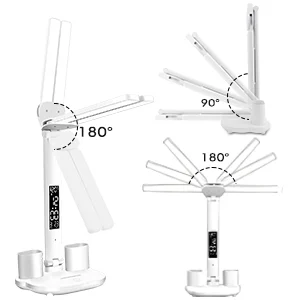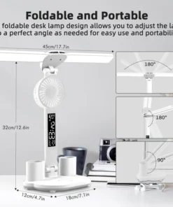 • [Double Head and Foldable Design] – The desk light adopts a double-head design, which can be unfolded into a straight line. Also, the lamp heads can be swung up and down from 0 degree to 180 degrees. Double head and foldable design not only provides you with a greater range and angle of illumination, but is also easy to store and carry.