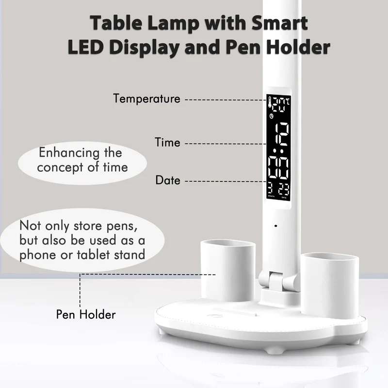 • [Smart LED Display and Pen Holder] – The piano light is equipped with a smart LED display for temperature, time and date. You can press the on/off button on the back of the lamp to turn the display on/off. In addition, the thoughtful pen holder design allows your piano light to not only store pens, but also to be used as a phone or tablet stand.