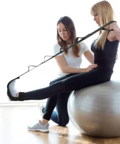 Put your foot in the loop, tighten it and you are ready to start. Both men and women are suitable for this therapy.