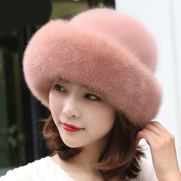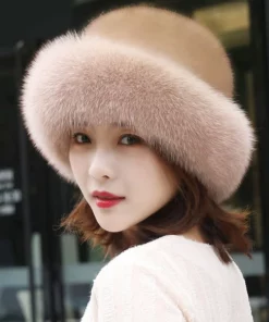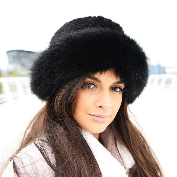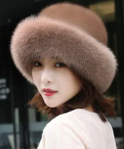 ❤ The top of the hat is woven from high-Premium fur, short and warm, the cuffs are made of High quality Faux Fox fur, and the inner lining is knitted with cashmere. It is soft, skin-friendly . ❤ Baggy Stingy Brim Hats for girls,The edge of the hat has an elastic band to adjust the size, one size fits all,good elastic,get compliments every time wear it.