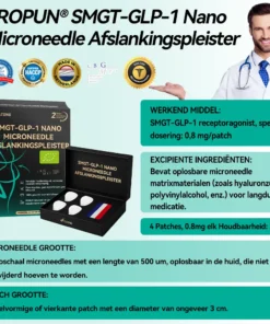 De Nano Microneedle Patch bevat SMGT-GLP-1 in elke pleister. Het werkt door de werking van glucagon-like peptide-1 (GLP-1) na te bootsen, de insulinesecretie te bevorderen, de glucagonsecretie te remmen en de maaglediging te vertragen, wat helpt bij het reguleren van de bloedsuikerspiegel en gewichtsverlies.