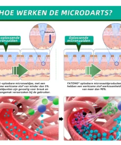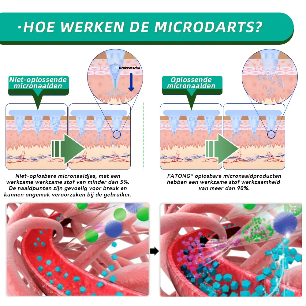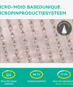 Elke naald is 0,27 mm lang, slechts 1/7 van de dikte van een haar , en is gemaakt van oplosbare medicatie . Deze micronaaldjes zijn met precisie vervaardigd met behulp van geavanceerde productietechnieken om een naadloze, pijnloze ervaring te garanderen en de actieve ingrediënten effectief direct in de huid te brengen.