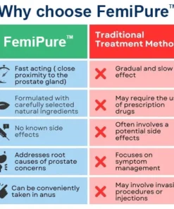 Promoting Healthy Cell Growth:FemiPure™ contains natural ingredients that have been selected for their potential to promote healthy cell growth within the prostate gland. These ingredients may possess antioxidant properties, anti-inflammatory effects, and support hormonal balance, all of which can help maintain a healthy cellular environment in the prostate.