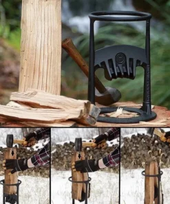- Just place a piece of firewood inside the 9in. dia. iron safety ring and firmly strike it with a blunt instrument, such as a hammer, mallet or even another piece of wood, easily driving the wood down onto the stationary wedge head