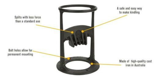 - There’s never any need to swing a sharp, heavy axe — the cast iron splitting head remains stationary, permanently mounted inside a cast iron frame