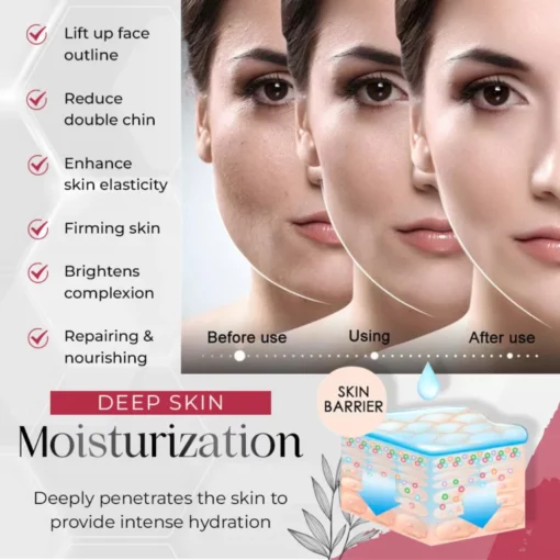 - Hydration and Moisturizationβ The Firming Powerful V-Shape Face Care deeply penetrates your skin and hydrates your skin from the inside out, thus making your faceΒ a healthy and dewy glow.