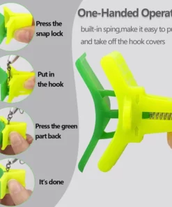 CONNECTING RING & ANTI-SKID DESIGN: The connecting ring design ensure the fishing hook bonnet can be easily hung anywhere. Make it easier to carry. The strip-shaped anti-skid design around the snap prevents the protective cover from slipping off easily when picked up.