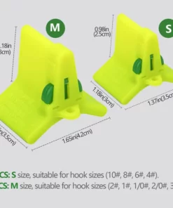 MATERIAL & 2 SIZE: Made of premium polyethylene material and stainless steel. Two choices: S size hooks cover suitable for hook sizes (10#, 8#, 6#, 4#). M size hooks bonnet suitable for hook sizes (2#, 1#, 1/0#, 2/0#, 3/0#). Reference picture of the specific size of the hook covers.