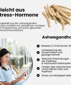 Wie hilft es bei der Stressbekämpfung? Es wird angenommen, dass Ashwagandha sich sowohl direkt als auch indirekt auf den Stress im Körper auswirkt. In mehreren Studien wurde nachgewiesen, dass Ashwagandha direkt zur Senkung des Cortisolspiegels beiträgt. Indirekt kann es dazu beitragen, andere Auswirkungen von Cortisol und akutem Stress zu mildern, indem es die Herzfrequenz und den Blutdruck senkt. Cortisol steht auch in direktem Zusammenhang mit dem Haarwachstum, da es die Produktion von Hormonen unterdrückt, die die Tätigkeit der Haarfollikel fördern. Ashwagandha kann durch die Verringerung von Stress den Kreislauf von Cortisolproduktion und Haarausfall ausgleichen und sowohl vorbeugend als auch heilend wirken, denn sobald der Körper aufhört, zu viel Cortisol zu produzieren, setzt das Haarwachstum schließlich wieder ein.