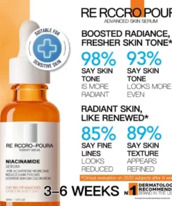 RE RCCRO POURA™ Advanced Skin Brightening Serum effectively addresses the primary reason of increased melanin that leads to deepening skin pigmentation by speeding up the clearance of insulin from the blood. The serum stimulates to release glucose that has been held there, which can assist to quickly flush insulin from the circulation.