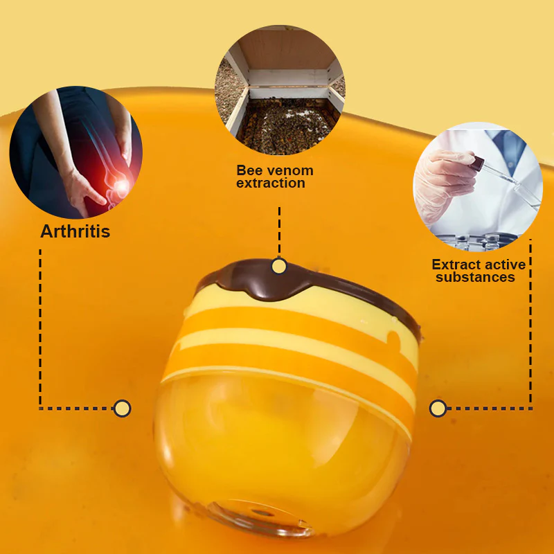 Der Hauptbestandteil von Bienengift ist Melittin, ein biologisch aktives Protein, das von den Nadeldrüsen der Bienen ausgeschieden wird. Es hat eine starke entzündungshemmende und schmerzlindernde Wirkung, die Arthritisschmerzen und Schwellungen wirksam lindern kann. - Bienengift enthält auch Enzyme, Aminosäuren, Zucker, Lipide und Vitamine usw. Diese Inhaltsstoffe haben auch einen gewissen Einfluss auf die Förderung der Reparatur von Gelenkgewebe, die Verbesserung der Gelenkelastizität und -beweglichkeit