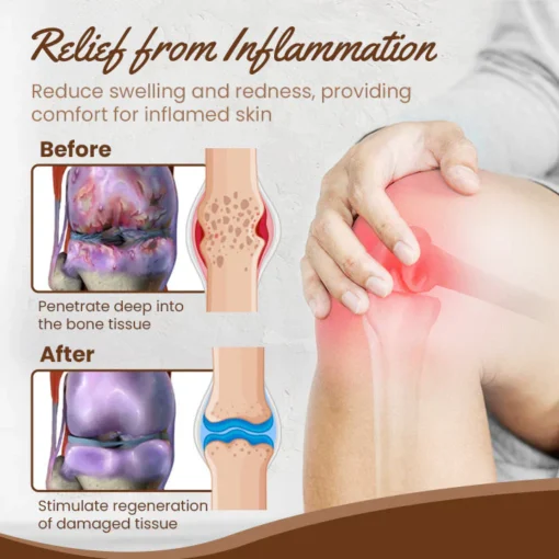 Unser Produkt nutzt eine fortschrittliche transdermale Technologie, die es seinen Wirkstoffen ermöglicht, die Hautbarriere effektiv zu durchdringen und das darunterliegende Gewebe zu erreichen. Beim Auftragen auf die Haut interagiert es mit Rezeptoren, die an der Schmerzwahrnehmung und Entzündung beteiligt sind. Diese Interaktion könnte zur Modulation von Entzündungswegen führen und möglicherweise die Freisetzung entzündungsfördernder Moleküle verringern, die zu Gelenk- und Knochenschwellungen beitragen. Es stimuliert auch die Regeneration beschädigter Zellen und Gewebe und unterstützt so den Genesungsprozess.