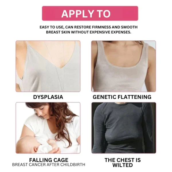✅ Prevents breasts from falling and drying out and keeps them in perfect shape. Delicate ingredients do not cause irritation and are safe for all skin types.