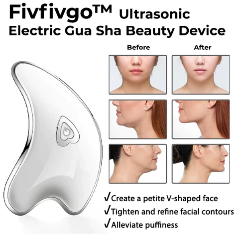 Enthülle deine wahre Schönheit mit Fivfivgo™! Unser elektrisches Ultraschall-Gua-Sha-Schönheitsgerät ist das ultimative Geheimnis für strahlende, geformte Haut. Erleben Sie die Verschmelzung von alter Weisheit und moderner Technologie, während Ultraschallvibrationen und Gua-Sha-Techniken zusammenkommen, um Schwellungen zu reduzieren, die Gesichtskonturen zu straffen und ein zierliches V-förmiges Gesicht zu schaffen. Erweitern Sie Ihre Hautpflegeroutine und lassen Sie Ihre natürliche Ausstrahlung durchscheinen.