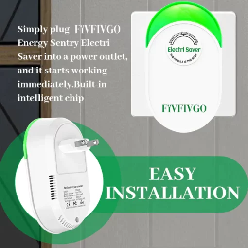 Einfache Installation: Es sind keine speziellen Kenntnisse erforderlich. Schließen Sie den Fivfivgo™ Energy Sentry Electri Saver einfach an eine Steckdose an und er beginnt sofort zu funktionieren. Es ist kein komplexer Installationsprozess erforderlich.