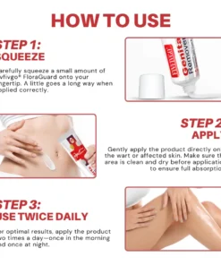 Fivfivgo® FloraGuard uses a multi-action botanical formula to gently break down wart tissue, reduce inflammation, and support skin regeneration. It targets the HPV-affected area while keeping your skin calm and moisturized.
