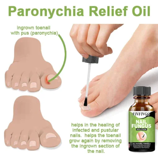 The Fivfivgo™ FootCure Removal Paronychia Gel treats and eliminates causative germs, softens buried toenails and calloused tissue, inhibits ingrown toenails, promotes healthy nail renewal, and straightens the nails.