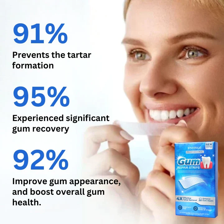 Say goodbye to pesky gum discomfort with Fivfivgo™ Gum Repair Strips! These easy-to-use strips soothe and protect your gums, promoting healthy and pain-free oral care. With Fivfivgo™ Gum Repair Strips, you can confidently show off your smile without any worries. Try it today and experience the difference!