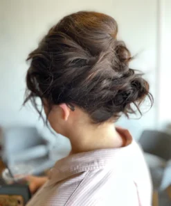 - Positionieren Sie den Clip: Halten Sie den Haarpolster-Clip mit beiden Händen und positionieren Sie ihn dort, wo Sie Ihrem Haar mehr Volumen geben möchten. In der Regel ist dies der Scheitel oder der obere Teil Ihres Kopfes.