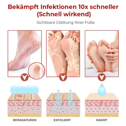 Hautinfektionen an den Füßen können durch verschiedene Faktoren verursacht werden, einschließlich Pilzen, Bakterien und Viren. Hier sind einige häufige Hauterkrankungen, die die Füße betreffen. Eine Nagelinfektion ist eine Pilzinfektion, die die Nägel der Zehen und Finger betrifft. Symptome sind verdickte, verfärbte oder brüchige Nägel. Es gibt auch Fußpilz, der die Haut zwischen den Zehen betrifft. Symptome sind Juckreiz, Brennen und Schuppenbildung.