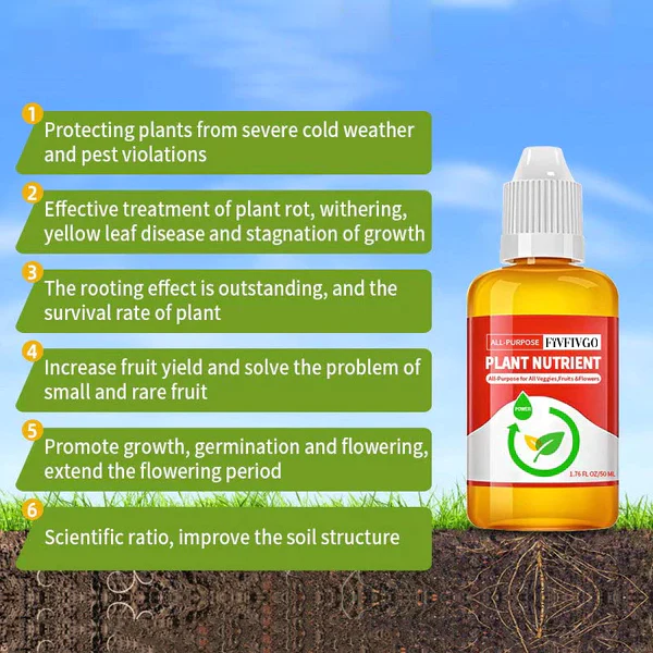 Fivfivgo™ HyperGrowth-Pro Pflanzenwachstumshormon enthält eine Mischung aller Mikronährstoffe und Mineralien, die für verschiedene Obst-, Gemüse- und Pflanzenarten erforderlich sind und in Ihrem aktuellen Ernährungsplan möglicherweise fehlen. Die Pflanzennährlösung trägt mit Sicherheit dazu bei, die Gesundheit und das Wachstum Ihrer Pflanzen zu maximieren. Ganz gleich, ob Ihr Ziel größeres Gemüse, ein gesünderer Rasen oder lebendigere und größere Blumen ist, dies wird Ihnen dabei helfen, die gewünschten Ergebnisse zu erzielen.