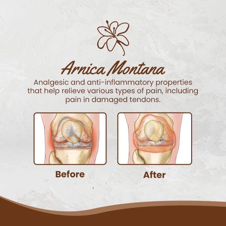Arnica Montana , gewonnen aus der Arnikapflanze, ist ein bekannter Inhaltsstoff in natürlichen Schmerzmitteln. Es hat schmerzstillende und entzündungshemmende Eigenschaften, die bei der Linderung verschiedener Arten von Schmerzen helfen, darunter auch Schmerzen in beschädigten Sehnen.