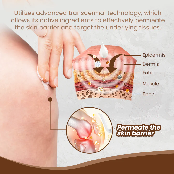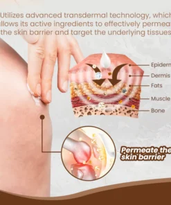 Unser Produkt nutzt eine fortschrittliche transdermale Technologie, die es seinen Wirkstoffen ermöglicht, die Hautbarriere effektiv zu durchdringen und das darunterliegende Gewebe zu erreichen. Beim Auftragen auf die Haut interagiert es mit Rezeptoren, die an der Schmerzwahrnehmung und Entzündung beteiligt sind. Diese Interaktion könnte zur Modulation von Entzündungswegen führen und möglicherweise die Freisetzung entzündungsfördernder Moleküle verringern, die zu Gelenk- und Knochenschwellungen beitragen. Es stimuliert auch die Regeneration beschädigter Zellen und Gewebe und unterstützt so den Genesungsprozess.