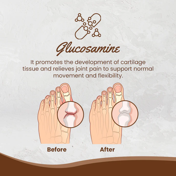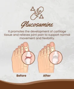 Glucosamin ist ein wesentlicher Bestandteil der Gelenkgesundheit und trägt zur Erhaltung der Struktur und des Wachstums des Knorpels bei. Es fördert die Entwicklung des Knorpelgewebes und lindert Gelenkschmerzen, um normale Bewegung und Flexibilität zu unterstützen.
