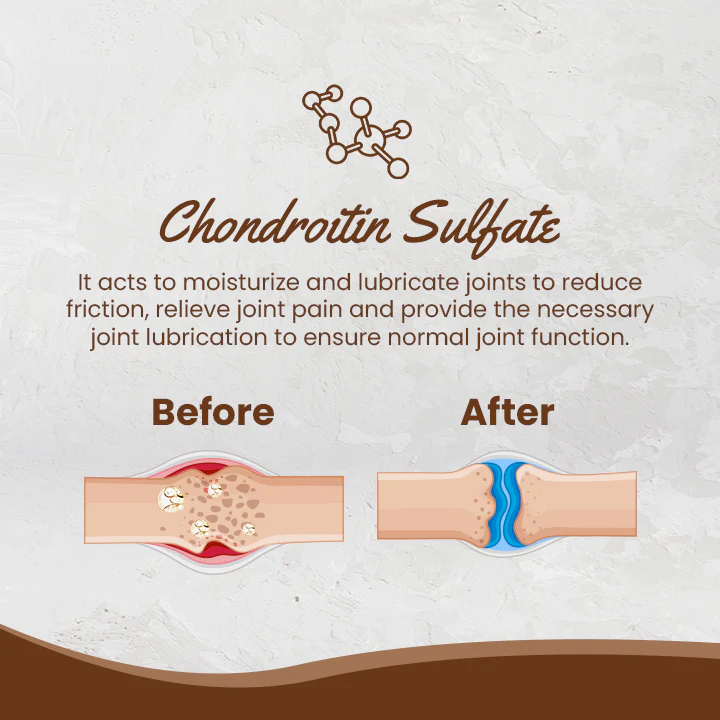 Chondroitinsulfat ist ein Hauptbestandteil des Knorpelgewebes. Es befeuchtet und schmiert Gelenke, um Reibung zu verringern, Gelenkschmerzen zu lindern und die notwendige Gelenkschmiere bereitzustellen, um eine normale Gelenkfunktion sicherzustellen.
