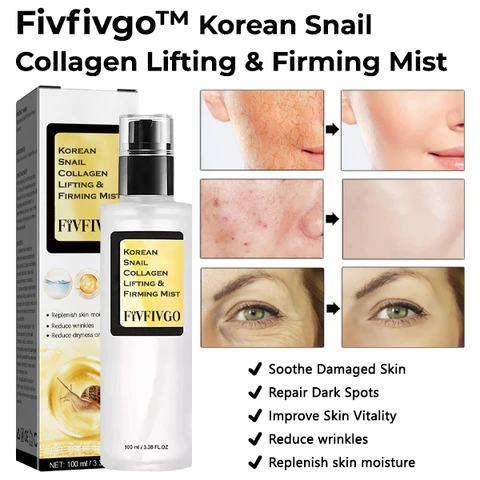 Introducing Fivfivgo™ Korean Snail Collagen Lifting & Firming Mist, the ultimate solution for achieving a youthful and radiant complexion!