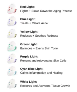 - Wählen Sie Ihre Farbe: Wählen Sie die LED-Farbe entsprechend Ihren spezifischen Hautbedürfnissen. Rot für die Stimulation von Kollagen, Blau für die Behandlung von Akne oder Grün für eine gleichmäßige Hautfarbe. Die Wahl liegt bei Ihnen.