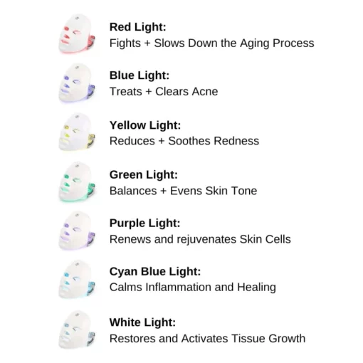 - Sieben verschiedene LED-Farben für die unterschiedlichsten Hautprobleme.