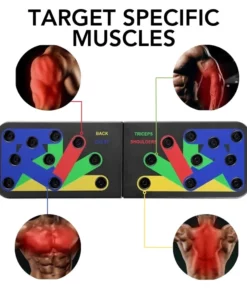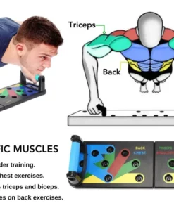 Das Fivfivgo™ Multi-Funktions-Liegestützbrett für zu Hause ist ein vielseitiges Trainingsgerät für das Ganzkörpertraining. Die faltbare Plattform ermöglicht es dem Benutzer, verschiedene Arten von Liegestützen auszuführen, indem er die Positionen der Griffe anpasst und bestimmte Muskelgruppen mit einem farbcodierten System anspricht – blau für Brust, rot für Schultern, gelb für Rücken und grün für Trizeps und Bizeps. Mit Schwerpunkt auf Brust, Schultern, Rücken, Trizeps und Bizeps eignet sich dieses tragbare und langlebige Gerät für verschiedene Fitnessniveaus und fördert Kraft, Ausdauer und die allgemeine Muskelqualität.