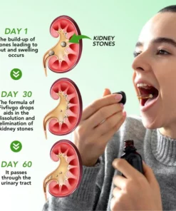 Fivfivgo™ Nieren-Boost-Tropfen wirken, indem sie die Nierenfiltration verbessern, die Gesundheit des Harnsystems fördern und Nierensteinen entgegenwirken. Die Tropfen enthalten eine Mischung aus natürlichen Wirkstoffen wie Dendrobium, Königskerzen-Extrakt, Holunder, Chanca Piedra-Extrakt und Zitronenextrakt, die eine optimale Nierenfunktion unterstützen und die damit verbundenen Symptome lindern. Oral eingenommen unterstützen die Tropfen die Ausscheidung von Abfallstoffen, die Entgiftung und die Aufrechterhaltung des Elektrolytgleichgewichts und liefern essentielle Nährstoffe für die Ernährung der Nieren und die Energieversorgung.