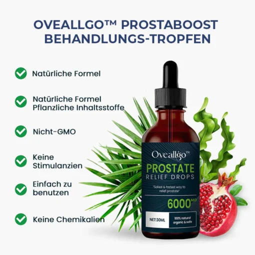 Fivfivgo™ ProstaBoost-Behandlungstropfen sind sorgfältig formuliert, um die Gesundheit der Prostata umfassend zu unterstützen und die unangenehmen Symptome zu lindern, die häufig mit Prostataproblemen verbunden sind.