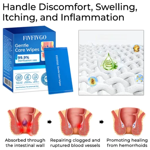 Wählen Sie Fivfivgo™ Gentle Care Wipes für einen ganzheitlichen Ansatz zur Analpflege. Mit einer einzigartigen Mischung aus Aloe Vera, Hamamelis und Vitamin E bieten diese Tücher natürliche Heilung, reduzieren Entzündungen und pflegen die Haut. Die milde Formulierung sorgt für Sanftheit bei empfindlicher Haut und macht es zur idealen Wahl für alle, die eine wirksame und beruhigende Linderung von Beschwerden suchen.
